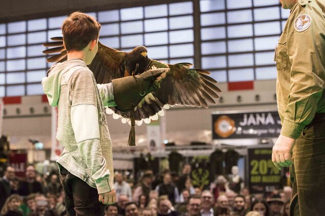 Besucher zufrieden mit Angebotsvielfalt, Ausstellern und Messe Die beliebtesten Angebotsbereiche auf der JAGD & HUND 2019 waren Jagdbekleidung, Waffen und Zubehör, Jagdzubehör und Optiken. Weitere begehrte Themen waren Tierkost und Hundebedarf sowie Geländefahrzeuge und Kulinarisches. Rund 90 Prozent der Besucher sind mit der Angebotsvielfalt an Ausstellern zufrieden. Das Angebotsspektrum der Messe bekam von den Besuchern die Note „gut“ bis „sehr gut“. Unter den Themenpräsentationen und Sonderschauen schnitten die Greifvogelvorführungen und die Vorstellungen der Jagdgebrauchshunderassen am besten ab. Aber auch der Geländewagenparcours in Halle 3B landete in diesem Jahr erneut auf den vorderen Plätzen.