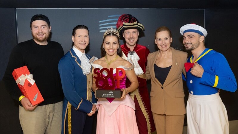 Dortmund, 26.11.2024 – Sabine Loos, die Hauptgeschäftsführerin der Westfalenhallen Unternehmensgruppe, übergab den Award vor der Show gleich an mehrere der Profi-Tänzerinnen und -tänzer. „‚Let’s Dance‘ begeistert jedes Jahr bereits im Fernsehen unglaublich viele Menschen. Dass wir hier in Dortmund auch einer der Standorte für die Live-Tournee sein dürfen, freut mich jedes Mal sehr. Und zu Recht gibt es in diesem Jahr erneut den Sold-Out-Award dafür. Denn damit würdigen die Fans das Engagement aller Beteiligten – von den Profis über die Prominenten, die bis zur Erschöpfung trainieren, bis hin zur Jury und zum Moderator. Diese einzigartige Show macht einfach Spaß!“