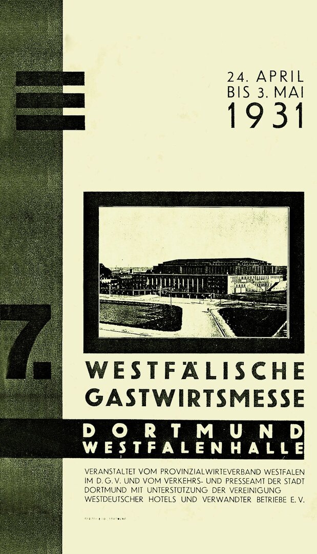 1931: Die Westfälische Gastwirtsmesse wird nach dem riesigen Besucherzuspruch (84.000) in Dortmund etabliert.