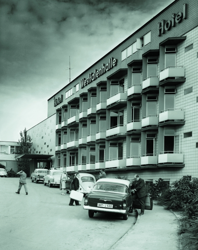 1959: Eröffnung des Hotels/Gästehaus Westfalenhalle mit 109 Zimmern pünktlich zur Bundesgartenschau